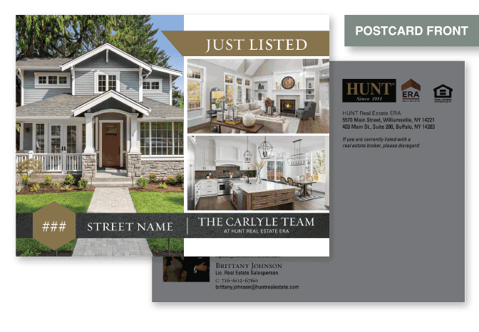 Just listed and just sold postcards designed as part of the Carlyle Team Branding, utilized in an online print vendor catalog.